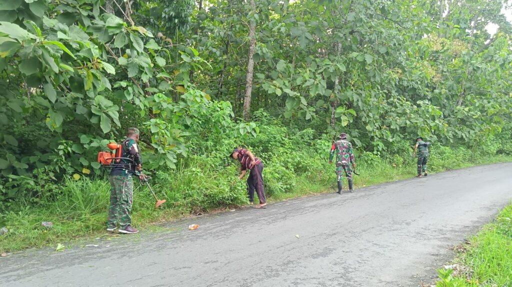 Sampang – Babinsa Koramil 0828/11 Tambelangan, Serma Mustakim, melaksanakan kegiatan kerja bakti pembersihan rumput di sepanjang pinggir jalan bersama warga di Desa Samaran, Kecamatan Tambelangan, Kabupaten Sampang. Kegiatan ini bertujuan untuk menjaga kebersihan lingkungan, memperindah desa, serta menciptakan kenyamanan dan keselamatan bagi para pengguna jalan. Selain itu, kerja bakti ini juga menjadi sarana mempererat hubungan antara TNI dan masyarakat melalui semangat gotong royong.