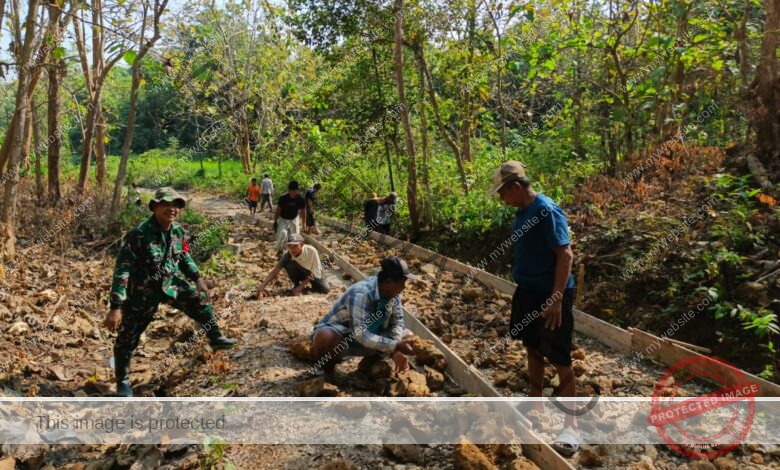 Banyuates— Dalam semangat kebersamaan dan kepedulian terhadap pembangunan desa, Babinsa Koramil 0828/09 Banyuates, Sertu Wagiman, turut serta dalam kegiatan gotong royong pengecoran jalan bersama masyarakat di Desa Terosan, Kecamatan Banyuates, Kabupaten Sampang, pada hari ini. Kegiatan tersebut merupakan bentuk nyata kemanunggalan TNI dengan rakyat, sekaligus upaya meningkatkan sarana dan prasarana infrastruktur desa agar akses transportasi warga menjadi lebih baik dan lancar.