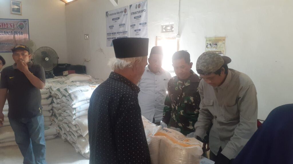 Sampang – Babinsa Koramil 0828/04 Torjun, Sertu Agus Dwi, melaksanakan kegiatan pendampingan penyaluran bantuan pangan alokasi bulan Februari dan Maret tahun 2026 yang bertempat di Balai Desa Tanah Merah, Kecamatan Torjun, Kabupaten Sampang. Kegiatan ini merupakan bentuk kepedulian pemerintah dalam membantu memenuhi kebutuhan pokok masyarakat, khususnya bagi keluarga penerima manfaat (KPM). Dalam pelaksanaannya, Babinsa turut hadir untuk memastikan proses distribusi berjalan tertib, aman, dan tepat sasaran. Adapun jumlah penerima bantuan pangan di Desa Patapan sebanyak 323 KPM, di mana masing-masing penerima mendapatkan bantuan berupa 20 kilogram beras dan 4 liter minyak goreng.