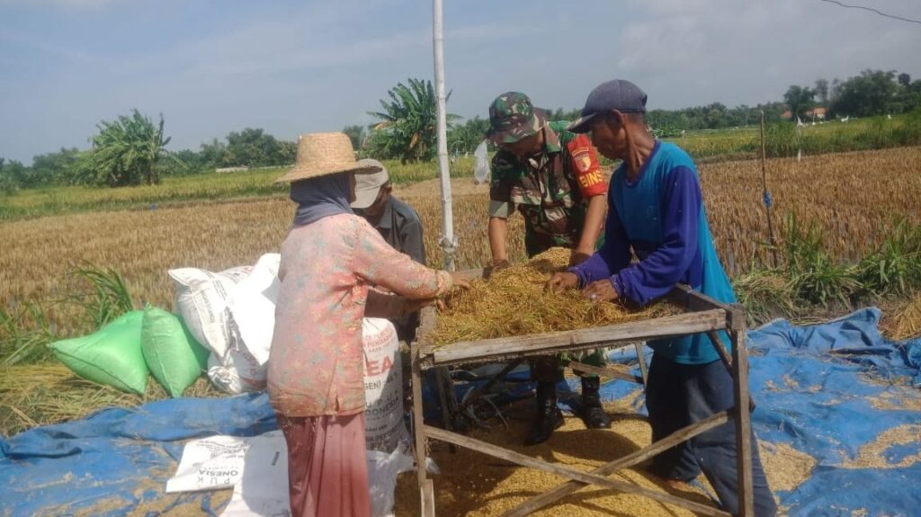 Sampang – Dalam upaya memperkuat ketahanan pangan nasional, Babinsa Koramil 0828-02/Camplong, Sertu Dody Adios Pranata, turun langsung ke sawah membantu warga memanen padi di Desa Dharma Tanjung, Kecamatan Camplong, Kabupaten Sampang. Kegiatan ini merupakan wujud nyata kepedulian TNI terhadap kesejahteraan masyarakat, khususnya para petani sebagai ujung tombak penyedia pangan. Di tengah hamparan padi yang menguning, Sertu Dody tampak berbaur bersama warga, memanen padi dengan penuh semangat dan kebersamaan.