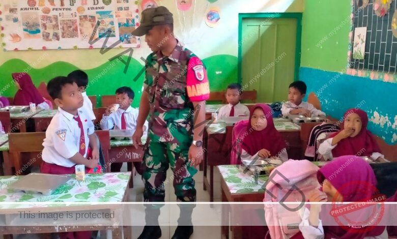 Sreseh– Dalam upaya mendukung program pemerintah dalam peningkatan gizi anak sekolah, Babinsa Koramil 0828/05 Sreseh Kopda Fiqik Kurniawan melaksanakan kegiatan pendampingan Program Makan Bergizi Gratis (MBG) di SDN Desa Noreh, Kecamatan Sreseh, Kabupaten Sampang. Kegiatan ini bertujuan untuk memastikan pelaksanaan program MBG berjalan lancar dan tepat sasaran, sekaligus memberikan motivasi kepada para siswa agar lebih semangat belajar dengan kondisi tubuh yang sehat dan bergizi.