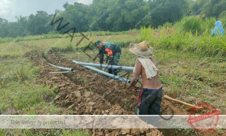 Sampang – Dalam rangka mendukung peningkatan produktivitas pertanian, Babinsa Koramil 0828/01 Sampang Serma Mansur melaksanakan pendampingan kegiatan Operasional Pemeliharaan dan Lahan (OPLAH) bersama Kelompok Tani (Poktan) Madu Tani di Desa Gunung Maddah, Kecamatan Sampang, Kabupaten Sampang, pada hari ini. Kegiatan tersebut berupa pemasangan pipa air untuk irigasi lahan pertanian, yang bertujuan memperlancar distribusi air bagi sawah warga. Kehadiran Babinsa sebagai pendamping lapangan menjadi bentuk nyata sinergi antara TNI dan masyarakat dalam mendukung ketahanan pangan di wilayah.