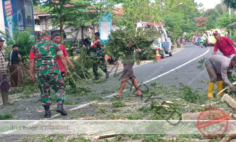 Kedungdung — Dalam wujud nyata pengabdian kepada masyarakat, Babinsa Koramil 0828/10 Kedungdung, Serma Samsuri, bersama warga dan unsur terkait melaksanakan pengamanan serta membantu proses penebangan pohon tumbang yang melintang di jalan utama jalur utara Kecamatan Kedungdung, Kabupaten Sampang. Pohon besar tersebut tumbang akibat angin kencang yang melanda wilayah Kedungdung dalam beberapa hari terakhir. Kejadian ini sempat mengganggu arus lalu lintas serta membahayakan pengguna jalan.