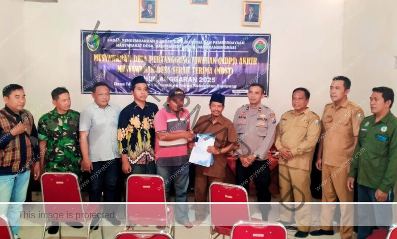 Sampang – Babinsa Koramil 0828/04 Torjun, Sertu Agus Duwi, bersama Forkopincam Torjun melaksanakan kegiatan pendampingan Musyawarah Desa Pertanggungjawaban (MDPJ) Anggaran APBD Tahun 2025 serta Musyawarah Desa Serah Terima (MDST) yang bertempat di Balai Desa Tanah Merah, Kecamatan Torjun, Kabupaten Sampang, pada hari ini. Kegiatan musyawarah desa tersebut dihadiri oleh unsur Forkopincam, Kepala Desa beserta perangkat desa, BPD, tokoh masyarakat, tokoh agama, serta perwakilan warga Desa Tanah Merah. Musyawarah ini bertujuan untuk menyampaikan laporan pertanggungjawaban penggunaan anggaran desa serta proses serah terima program dan kegiatan desa secara transparan dan akuntabel.