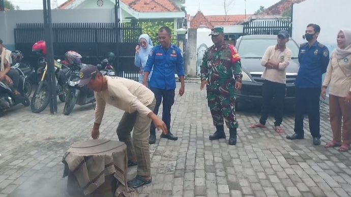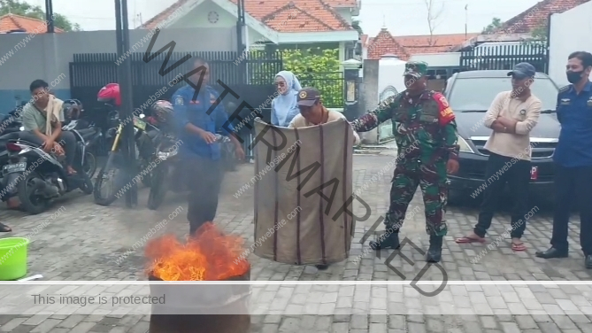 Babinsa Koramil 0828/01 Sampang, Serka Sugeng, bersama petugas Pemadam Kebakaran Kabupaten Sampang melaksanakan kegiatan pelatihan praktek sederhana penanggulangan kebakaran bagi para pengelola dan pekerja di Dapur Sehat Makan Bergizi Gratis (MBG). Kegiatan tersebut dilaksanakan di Dapur Sehat Makan Bergizi Gratis (MBG) yang berlokasi di Jl. Merpati, Kelurahan Gunung Sekar, Kecamatan Sampang, Kabupaten Sampang. Pelatihan ini bertujuan untuk memberikan pemahaman serta keterampilan dasar kepada para pekerja dapur dalam menghadapi potensi kebakaran yang bisa terjadi saat aktivitas memasak berlangsung.