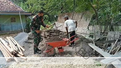 Babinsa Hadir di Tengah Warga, Gotong Royong Bangun Dapur Sederhana di Dusun Gulbung