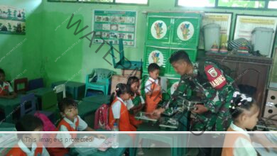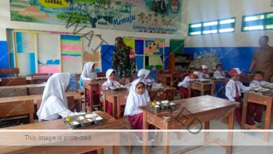 Sampang — Babinsa Koramil 0828/03 Omben, Sertu Nasirruddin, melaksanakan kegiatan pendampingan pendistribusian Makan Bergizi Gratis (MBG) di sekolah Desa Karang…