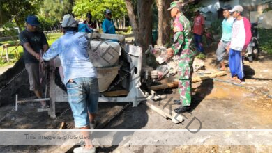 Babinsa Menyatu dengan Rakyat, Kopda Gunawan Turut Cor Jalan Desa Ketapang Laok