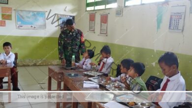 Hadir Menyemai Sehat Generasi Bangsa Sertu Nasirudin Dampingi Program MBG di Sekolah Desa Omben