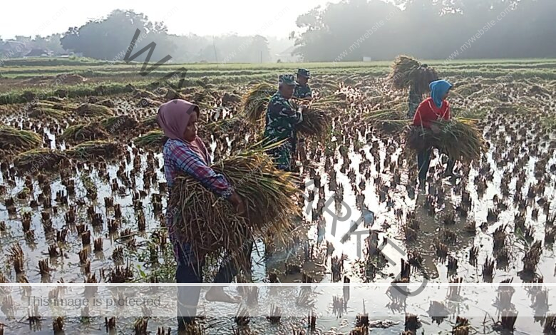 TNI dan Petani, Serka Machmud Zainuddin Dampingi Panen Padi MT I di Desa Pandan Omben