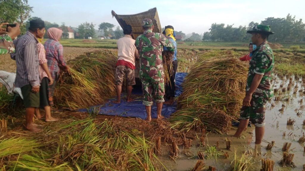 Sampang – Wujud nyata kepedulian TNI terhadap ketahanan pangan terus ditunjukkan oleh aparat kewilayahan. Babinsa Koramil 0828/03 Omben, Serka Machmud Zainuddin, turun langsung ke sawah membantu petani melaksanakan panen padi Musim Tanam (MT) 1 di Desa Pandan, Kecamatan Omben, Kabupaten Sampang. Kegiatan ini merupakan bagian dari tugas pembinaan teritorial yang rutin dilakukan Babinsa dalam mendampingi para petani guna mendukung program ketahanan pangan nasional. Kehadiran Serka Machmud Zainuddin di tengah-tengah petani tidak hanya memberikan semangat, tetapi juga membantu mempercepat proses panen.