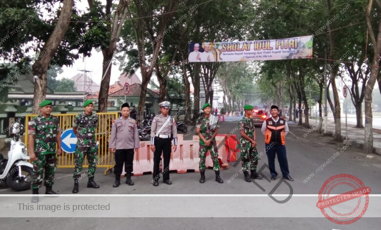 Sampang, 31 Maret 2025 – Dalam rangka menyambut perayaan Hari Raya Idul Fitri 1446 H, Kodim 0828/Sampang bersama dengan Polsek Sampang menggelar pengamanan untuk memastikan kelancaran dan keamanan pelaksanaan Sholat Idul Fitri 1446 H yang dilaksanakan di depan jalan Pendopo Kabupaten Sampang. Kegiatan ini melibatkan anggota TNI dan Polri untuk memberikan rasa aman kepada umat Islam yang sedang melaksanakan ibadah sholat Idul Fitri.