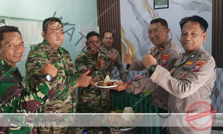 Ketapang– Dalam suasana penuh kehangatan dan kebersamaan, Koramil 0828/07 Ketapang yang dipimpin oleh Peltu M. Jasuli bersama seluruh anggota menerima kejutan spesial berupa tumpeng dan ucapan selamat Hari Ulang Tahun (HUT) ke-80 Tentara Nasional Indonesia (TNI) dari jajaran Polsek Ketapang, yang dipimpin langsung oleh Kapolsek beserta anggota. Kegiatan berlangsung di Kantor Koramil 0828/07 Ketapang, Desa Ketapang Daya, Kecamatan Ketapang, Kabupaten Sampang. Suasana akrab dan penuh semangat sinergi terasa kental dalam momen ini, sebagai bentuk nyata soliditas antara TNI dan Polri dalam menjaga keamanan dan ketertiban wilayah.