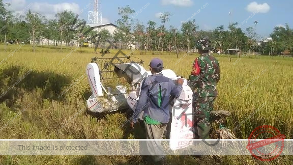 Turun ke Sawah, Babinsa Praka Sutrisno Dampingi Petani Panen Padi di Desa Banyuates
